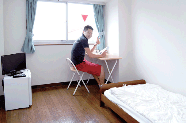 教習所から送迎バス15分の便利な立地。ゆったりと過ごしたい方にお勧めの広々としたお部屋。